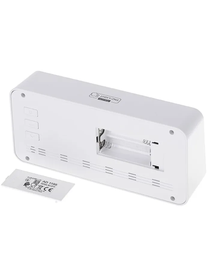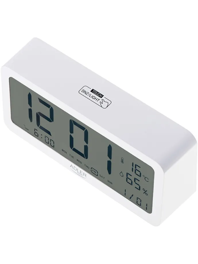 – Funktionen: Stunden, Minuten, Weckfunktion, Snooze-Funktion, Temperaturanzeige, Luftfeuchtigkeitsanzeige, Wochentagsanzeige