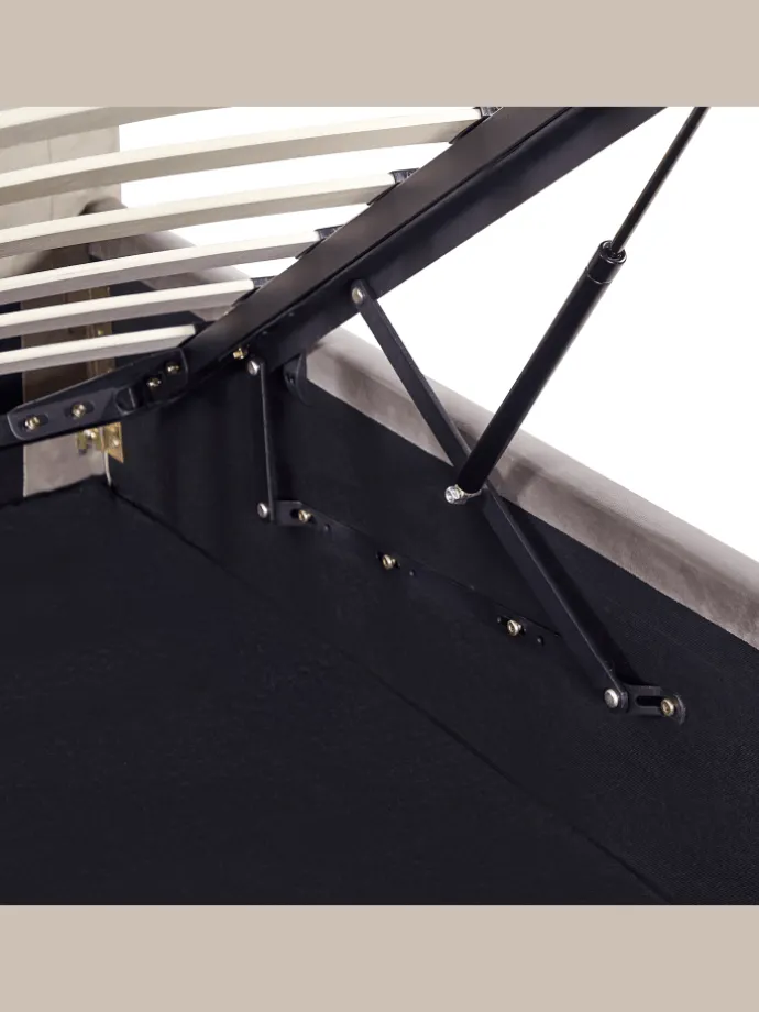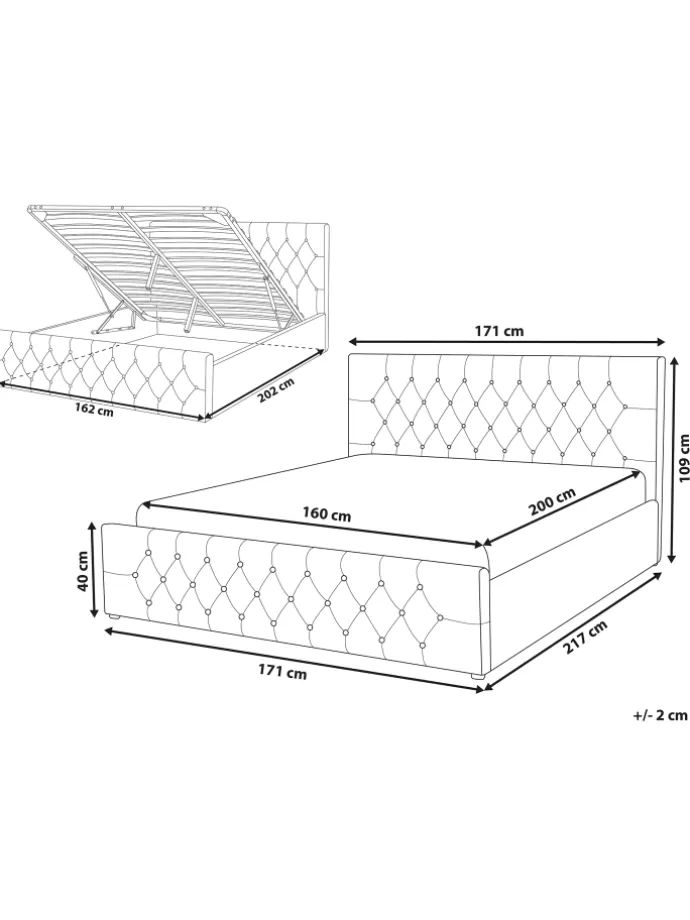 Stoßdämpfende Federholzleisten bieten höchsten Liegekomfort, Fester, integrierter Rahmen für dauerhafte Stabilität, Edler Chesterfield-Look, Veredelt mit dekorativer Knopfsteppung, Stabile und solide Konstruktion, Seidenweicher, geschmeidiger Stoff, Praktischer, großer Stauraum