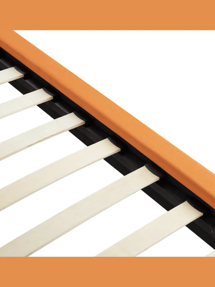 Gemütliches Polsterbett mit hohem Kissen-Kopfteil und passendem Lattenrost. Das schicke und bequeme Polsterbett aus Samtstoff in stilvollem Orange ist ein Must-Have für Alle, die Funktionalität und Ästhetik schätzen! Die hochwertige Polsterung und der stabiler Lattenrost machen dieses Doppelbett zu einer Investition. Die Perfekte Wahl, wenn Sie ein Produkt brauchen, das gleichzeitig praktisch und schön ist.