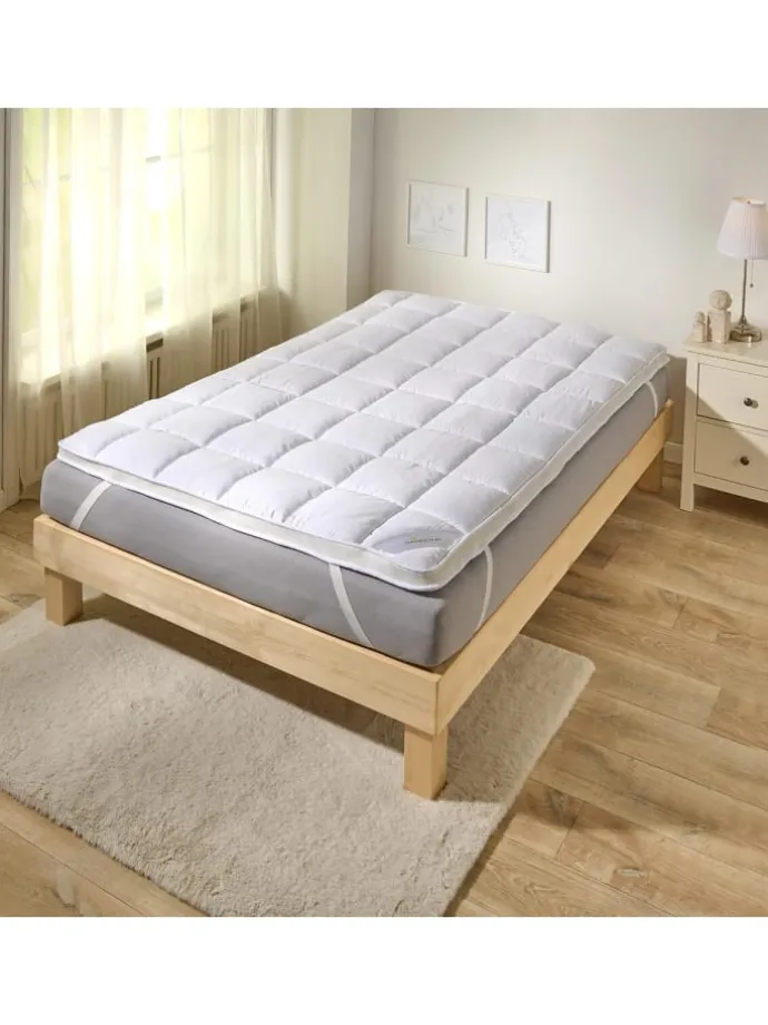 Der Topper ist mit vier stabilen Gummibändern an den Ecken ausgestattet, die eine sichere Befestigung auf der Matratze gewährleisten und ein Verrutschen verhindern.