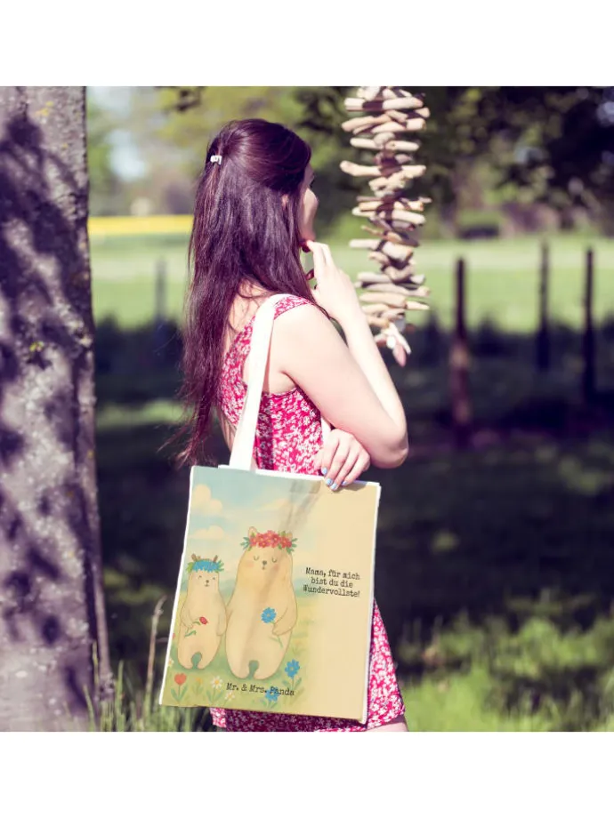 Unsere Mr. & Mrs. Panda Einkaufstasche ist das perfekte Beispiel dafür, wie Alltagstauglichkeit und Stil Hand in Hand gehen können. Sie ist dein idealer Partner für jegliche Shoppingtouren oder als stilbewusster Begleiter im Alltag. Die hochwertige Kunstfaser macht sie zu einem robusten Alltagsgegenstand, während das liebevolle Design von Mr. & Mrs. Panda jedem Outfit das gewisse Extra verleiht. Durch die abwischbare Oberfläche und den Pflegehinweis für lauwarme Handwäsche ist sie leicht zu reinigen und behält ihr attraktives Aussehen. Sie vereint Funktionalität mit Ästhetik: Dank der umsäumten und eingeschlagenen Innennähte ist sie besonders formbeständig und durch die praktischen Henkel angenehm zu tragen. Als Beuteltasche, Shopper oder Umhängetasche überzeugt sie durch ihre Vielseitigkeit und ist nicht nur beim Einkaufen dein treuer Begleiter.