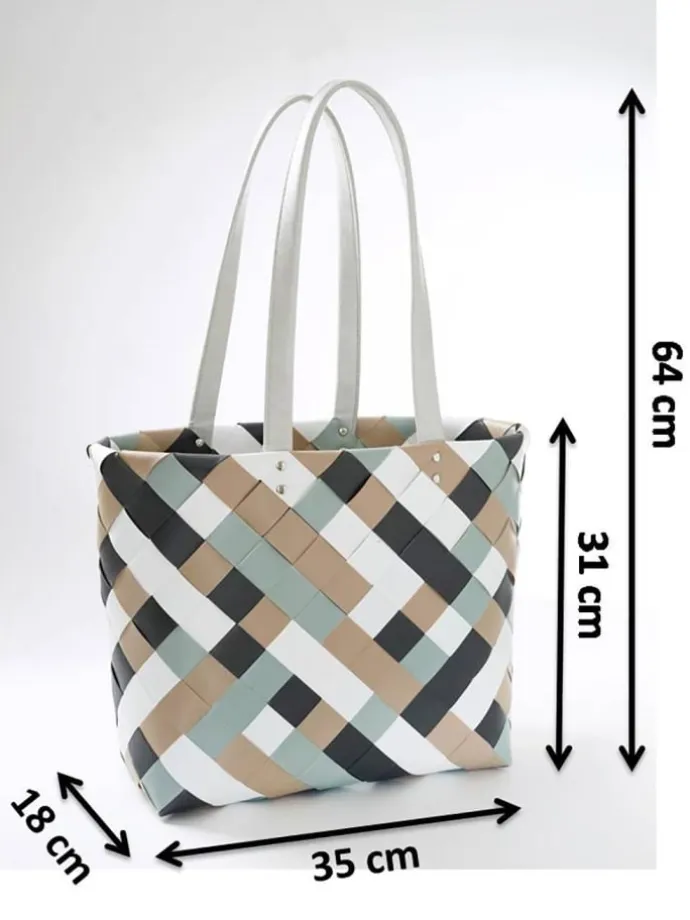 BELFAST XL – Modell in braun, blau und weiß mit extra angenehmen Henkeln aus Kunstleder für perfekten Komfort beim Tragen. BRINGEN SIE FARBE IN IHR LEBEN – Unser Sortiment hält für jeden Geschmack den passenden Shopper parat. DIE QUAL DER WAHL – Ob klein oder groß, mit 2 oder 4 Henkeln, schlicht oder ausgefallen – Wir haben für jede Situation die richtige Einkaufstasche. LANGLEBIGES EINKAUFSVERGNÜGEN – Mit unseren Taschen aus widerstandsfähigen Kunststoffbändern finden Sie einen strapazierfähigen Begleiter der zudem leicht zu reinigen ist – Die angegebenen Maße sind circa Maße und beziehen sich auf die Bodenabmessung.