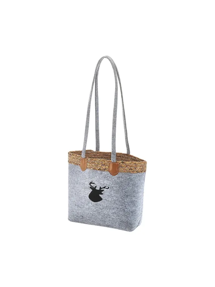 Praktische Filztasche mit toller Hirsch-Applikation von Kobolo. Ob als Handtasche oder Shopper, diese Tasche wird für sie zum treuen Begleiter, da sie sich sowohl für den kleinen Feierabend-Einkauf als auch für Freizeitaktivitäten eignet. Durch den angesagten Materialmix wird die Tasche zu einem echten Modeaccesiore. Da unsere Damentasche in Handarbeit aus Naturmaterialien hergestellt wird, kann es zu Abweichungen von der fotografischen Darstellung in Form, Farbe und Größe kommen.