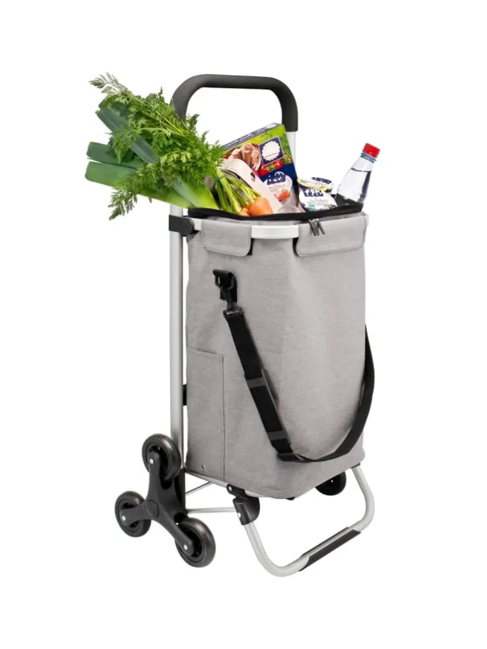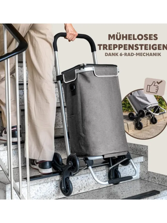 Beim Einkaufen befestigen Sie den Trolley einfach mithilfe der 2 installierten Haken vorne an den Einkaufswagen. Der Einkaufstrolley beansprucht also keinen Platz, den Sie für Ihre Einkäufe im Einkaufswagen benötigen. Nach dem Bezahlen wandern die Einkäufe vom Einkaufswagen in den Trolley und Sie beginnen ganz unkompliziert Ihre Heimfahrt. Im Auto ist der Einkaufstrolley durch die kompakte Bauweise selbst in Kleinwagen schnell verstaut. Dank der 3-Räder Konstruktion sind Treppen und Bordsteine ab sofort kein Problem mehr.