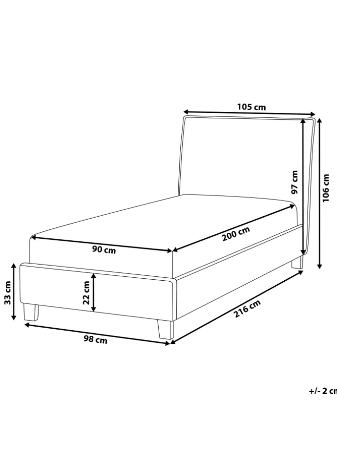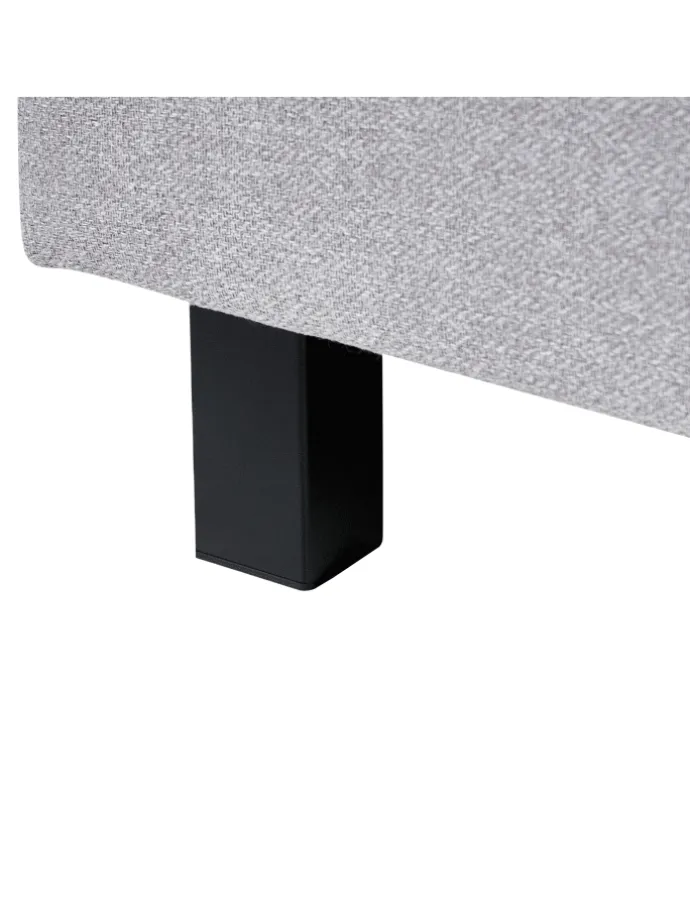 Modernes Einzelbett mit hohem Kopfteil und Polsterbezug in elegantem Grau in Leinenoptik. Dieses Stoffbett verfügt über ein hohes, angenehm gepolstertes Kopfteil, das Sie entspannt anlehnen lässt. Dank des pflegeleichten grauen Bezugs, der schwarzen Metallbeine, des schlichten Designs sowie des dekorativ verarbeiteten Kopfteils lässt sich dieses bequeme Polsterbett hervorragend mit modernen, natürlichen, ländlichen und skandinavischen Einrichtungsstilen kombinieren.