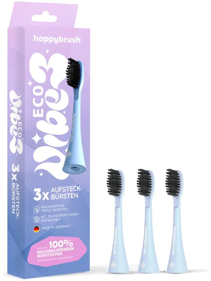 – Inhalt: 1x Schall-Zahnbürste Eco VIBE 3, 1x Aufsteckbürste, 3x Ersatz-Aufsteckbürsten, 1x Ladestation