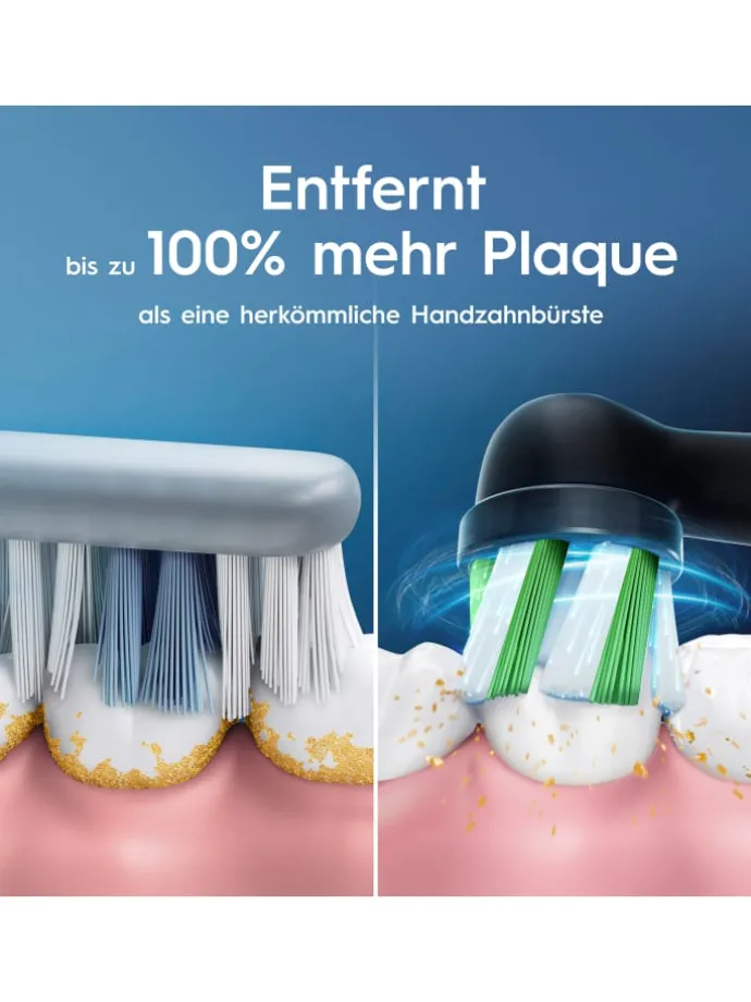 • Gründliche Reinigung dank 2D-Technologie: Oszilliert und rotiert, um bis zu 100% mehr Plaque zu entfernen als eine herkömmliche Handzahnbürste