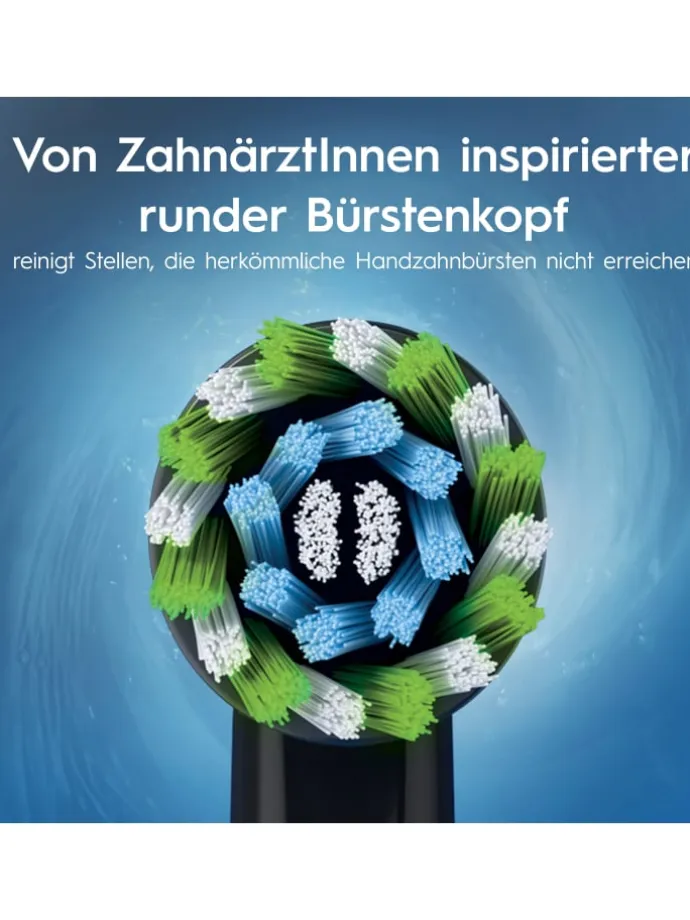 • Der von Zahnärzten inspirierte runde Bürstenkopf umschließt jeden Zahn für eine tiefe Reinigung und ist gleichzeitig sanft zum Zahnfleisch