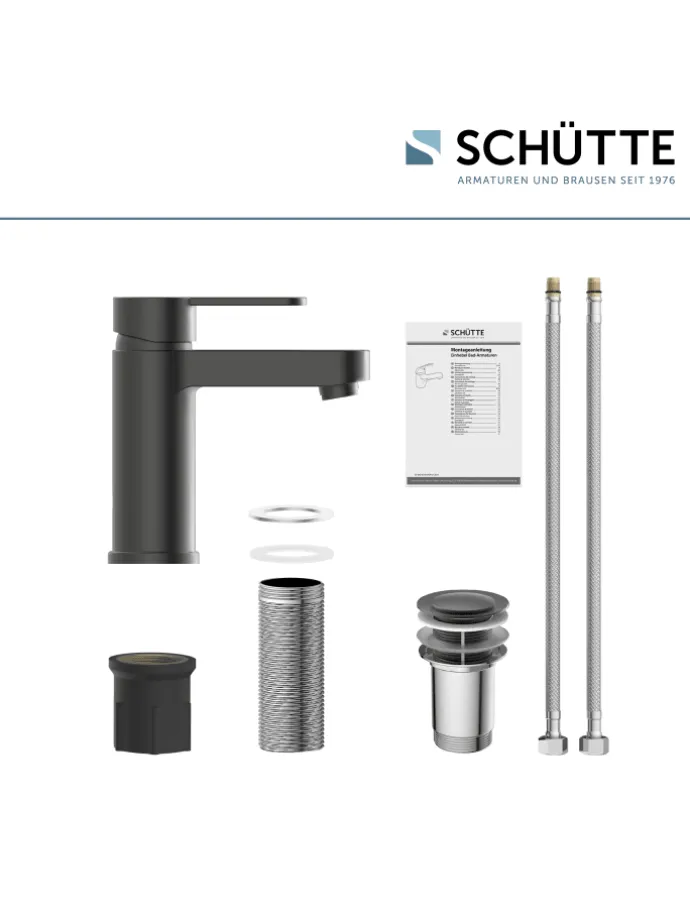 Im Lieferumfang enthalten ist ein vollständiges Montageset und eine mehrsprachige, bebilderte Montageanleitung. Die korrosionsbeständigen Anschlussschläuche (400 mm) an das Hauswassersystem sind flexibel und leicht zu montieren.