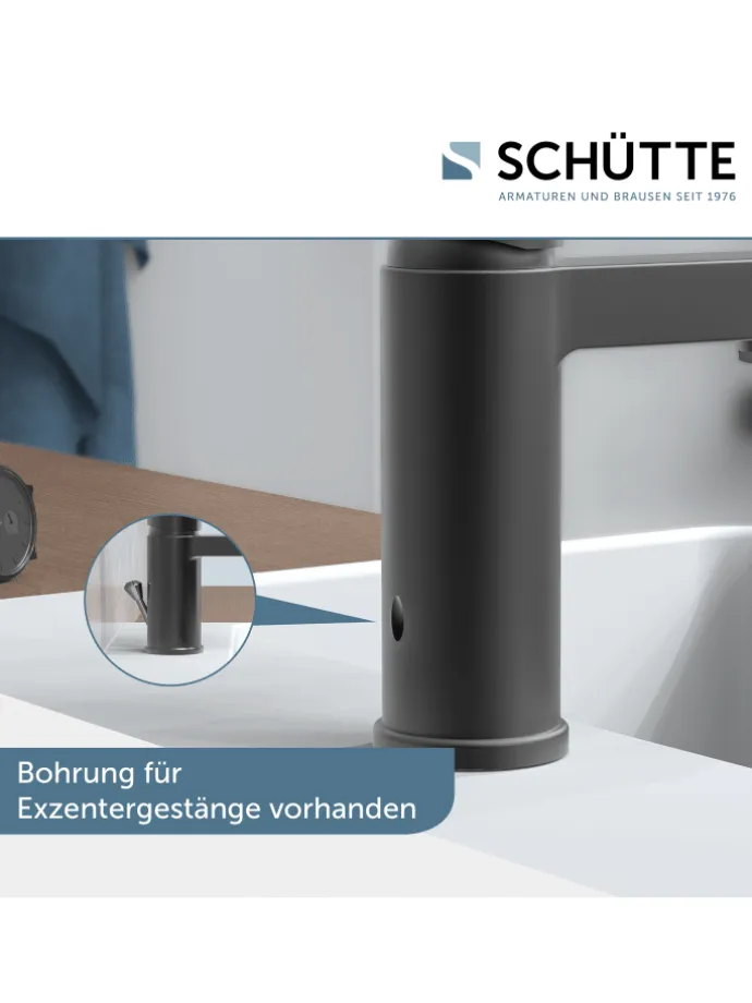 Die Badarmatur verfügt über eine vorhandene Lochbohrung zur einfachen Integration eines Exzenters für die Ablaufsteuerung.