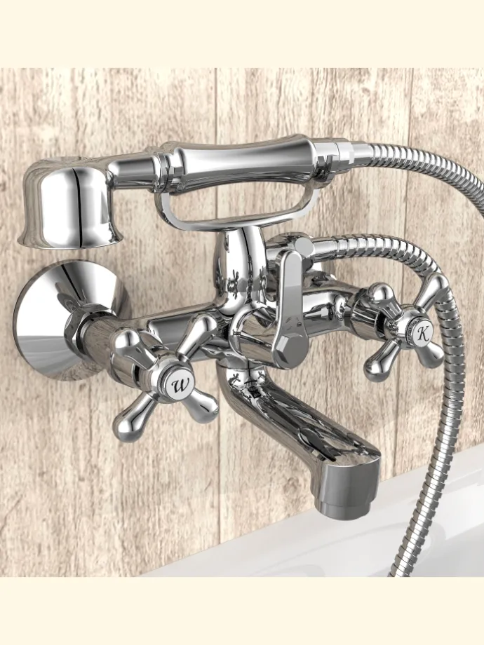 Bei dieser Badezimmerarmatur ist alles aufeinander abgestimmt und es gibt sie nur im Set, inkl. Handbrause und Duschschlauch. Perfekt, alles komplett.