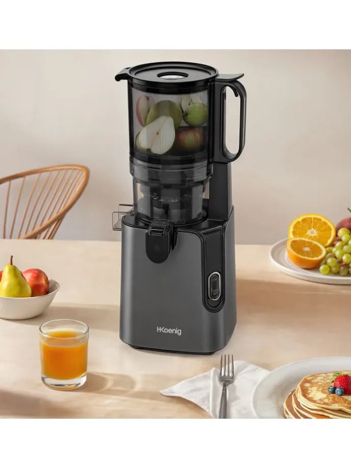 Der GSX26 ist so konzipiert, dass er dank seiner sanften Presstechnologie mit einer extra niedrigen Geschwindigkeit von 50 Umdrehungen pro Minute maximalen Saft entzieht und dabei wichtige Nährstoffe bewahrt. Sein Propeller ohne Klinge garantiert eine effiziente Extraktion mit minimalem Abfall und bietet bis zu 30 % mehr Saft als ein herkömmlicher Entsafter.