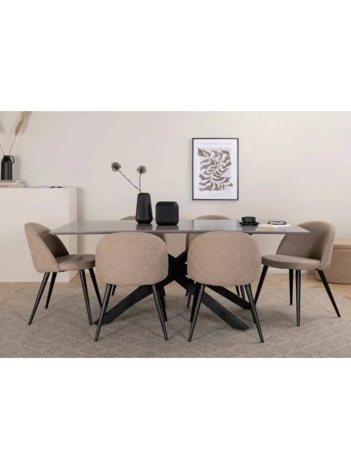 Das Esstischset „PiazzaGRBL“, ein Esstisch in Grau und 6 Stühle aus „Velvet Stitches“ in Beige ist ein Esstischset in Farbe, das sowohl Stil als auch Funktionalität in Ihr Zuhause bringt. PiazzaGRBL Esstischset Esstisch grau und 6 Velvet Stitches Stühle beige. Piazza-Tisch 60-29892-858. Tisch cm: L180 x T90 x H76. Tisch: Holz, Eisen, MDF, Furnier. Velvet Stitches Stuhl 60-19925-810. Menge 6 Stk. Stuhl cm: B50 x H76,5 x T57. Sitzhöhe cm: 46,5. Sitztiefe cm: 42,5. Sitzbreite cm: 41. Maximales Gewicht kg: 200. Stoff. Stuhl: Schaumstoff, Sperrholz, Polyesterleinen, Baumwollfasern, Eisen. Dieses Produkt wurde mit viel Liebe zum Detail hergestellt, was sowohl Ästhetik als auch hohe Haltbarkeit gewährleistet. Bei der Gestaltung wurde sowohl auf Funktionalität als auch auf Stil geachtet, was es zur perfekten Wahl für jeden Raum in Ihrem Zuhause macht. Die verwendeten Materialien sind von hoher Qualität, was dem Produkt eine lange Lebensdauer verleiht und dafür sorgt, dass es dem täglichen Gebrauch standhält. Ob zur Aufbewahrung oder als dekorative Ergänzung, dieses Produkt wertet Ihre Einrichtung auf und bringt zusätzlichen Komfort und Eleganz in Ihr Zuhause.