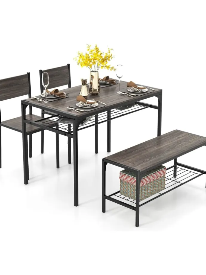 Mit einer großzügigen Tischplatte bietet unser Esstisch ausreichend Platz für Mahlzeiten und Zusammenkünfte und ist somit ideal für Familien und kleine Versammlungen. Darüber hinaus verfügt es über ein Tisch-Aufbewahrungsregal und ein Bank-Aufbewahrungsregal, sodass Sie Ihre Essensutensilien einfach organisieren und aufbewahren können, um Ihren Raum ordentlich und frei von Unordnung zu halten. Und dank des robusten Metallrahmens gewährleistet unser Essgruppen-Set Stabilität und Langlebigkeit über die Jahre.