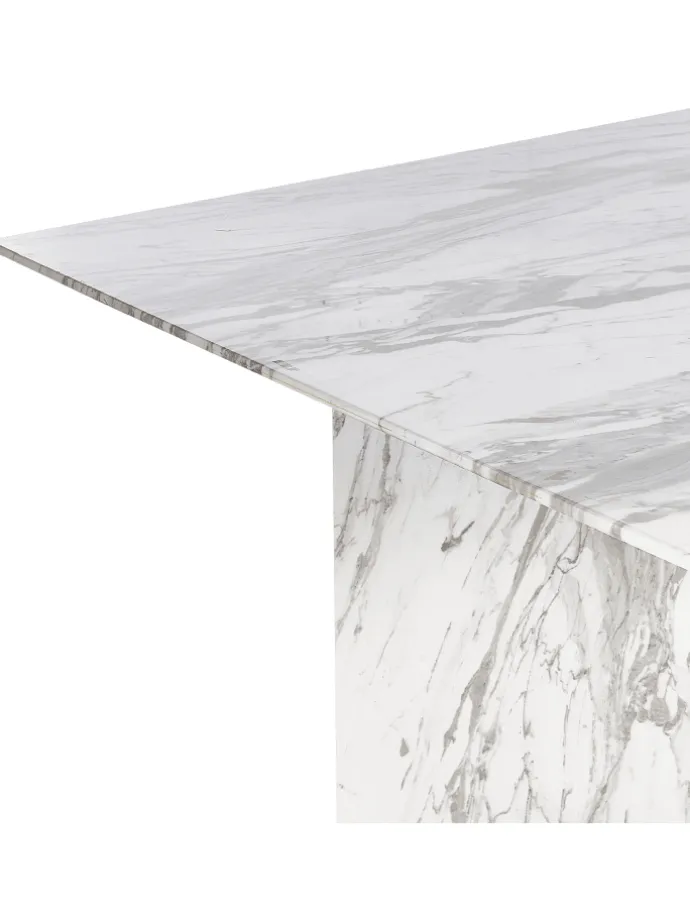 Passt perfekt für große Familientreffen, Modernes Marmor-Finish, Moderne Ausstrahlung und langjährige Qualität, Robustes Gestell, Für die optimale Pflege schützen Sie die Oberfläche mit Untersetzern und Platzsets vor Hitze und Feuchtigkeit. Robuste Tischplatte aus Sicherheitsglas