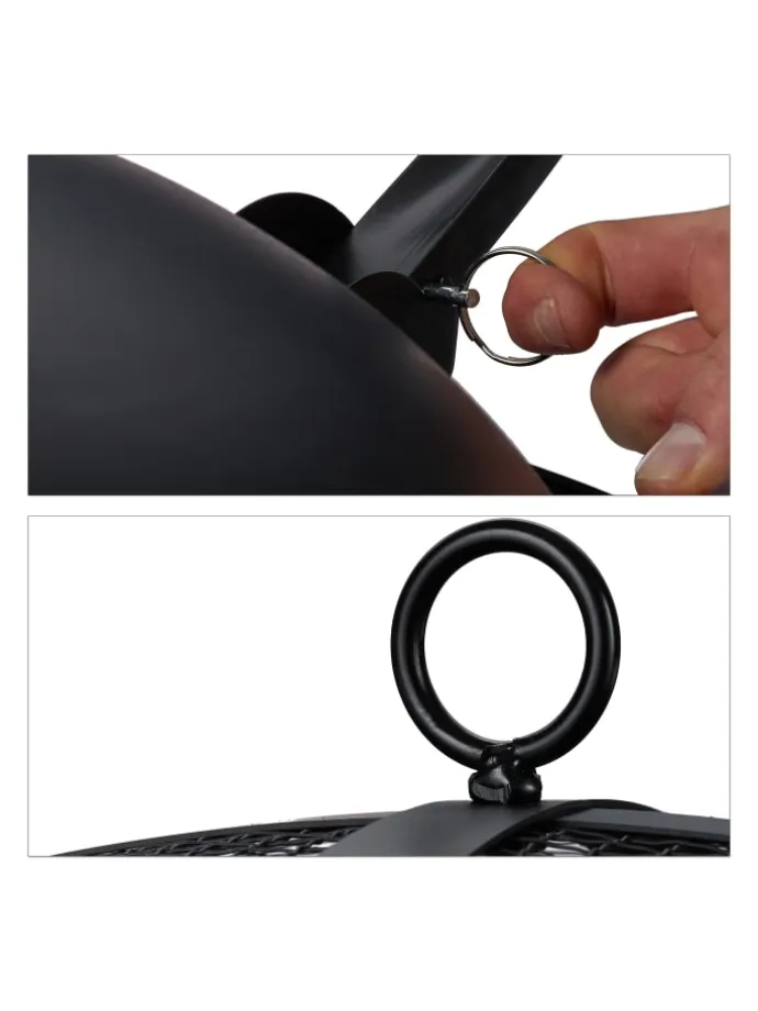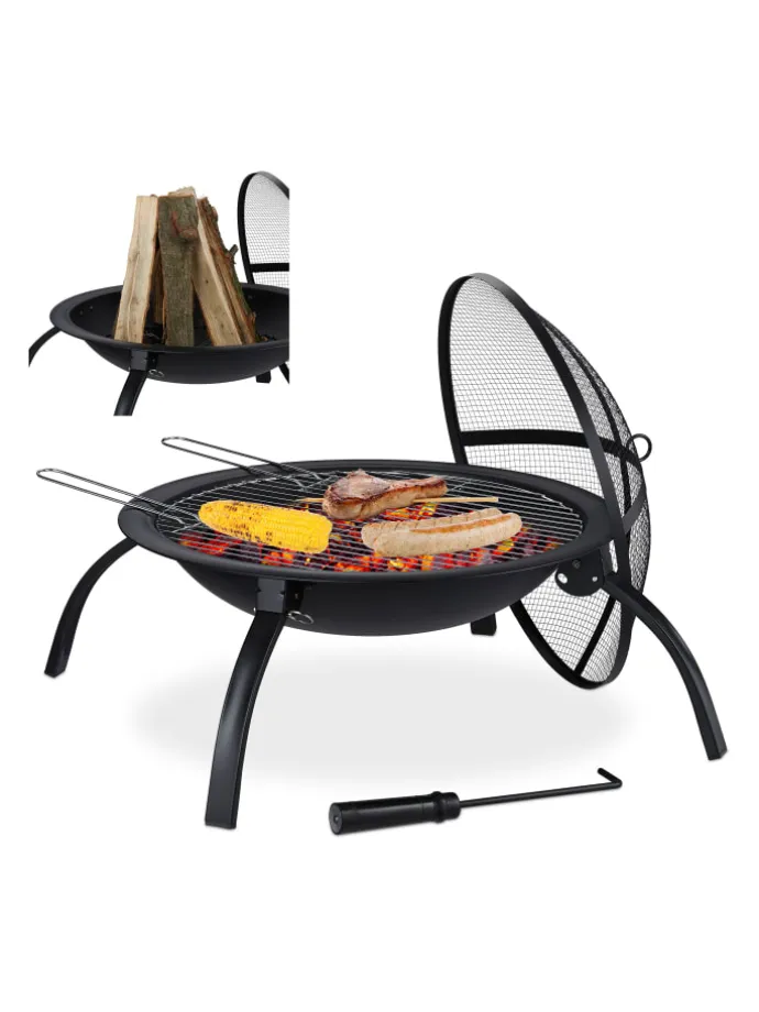 Die Feuerschale kommt ohne lästige Montage aus – Sie klappen einfach nur die Beine runter und platzieren sie auf einem ebenen Untergrund. Dank des Feuerrosts liegt das Holz nicht direkt am Boden der Schale, wodurch eine größere Luftzirkulation gewährleistet wird und das Feuer besser brennt. Der Funkenschutz-Deckel wird auf das Feuer aufgelegt, hemmt gefährlichen Funkenflug und ermöglicht dabei dennoch eine vollständige Betrachtung des Feuers.