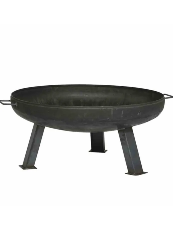 Aus Stahl, mit angeschweißten Füßen und Wasserablaufloch