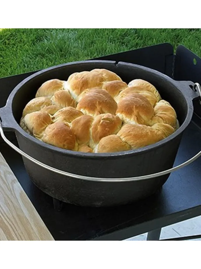 Das Garen mit dem Dutch Oven ist eine faszinierende Erfahrung. Der würzige Geschmack der im Dutch Oven zubereiteten Speisen erfreut sich weltweit großer Beliebtheit. Camp Chef Dutch Ovens eignen sich sowohl für Mitglieder der eingeschworenen Dutch Oven Community wie auch für alle, die zum ersten Mal diese Outdoor-Gartechnik auf ihrer Terrasse ausprobieren wollen. Reinigung & Pflege: Dank der vorbehandelten Oberfläche des Gusseisens kannst Du sofort mit dem Kochen loslegen. Es ist kein Einbrennen vor dem ersten Kochen notwendig. Zur Reinigung der Pfanne verwendest Du bitte nur warmes Wasser. Keinesfalls darf das Gussprodukt mit Spülmittel oder anderen chemischen Reinigern gesäubert werden, weil dies die Patina zerstören würde, die den Topf vor Korrosion schützt. Nach einer gründlichen Reinigung empfehlen wir Dir den Einbrennvorgang zu wiederholen. Es gibt dafür 2 erprobte Methoden: Verwende eine Pflegepaste, reibe damit den ganzen Guss ein und erhitze deine Pfanne/Topf/Form einmal richtig. Die Pflegepaste verläuft und dringt tief in den Eisenguss ein und schützt diesen dann perfekt.