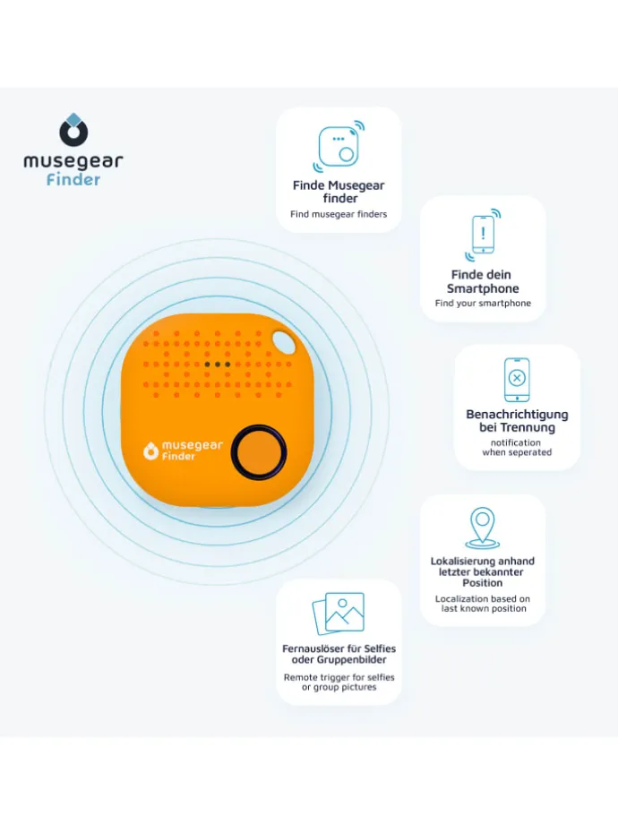 KOSTENGÜNSTIG & ZUVERLÄSSIG: Der finder ist preisgünstiger als klassische Schlüsselfinder. Sie brauchen nur die App für Android und iOS (musegear finder) herunterladen und können loslegen. Einmaliger Kauf, keine verdeckten Kosten, kein Abo. Durch ständige Qualitätskontrolle und modernste Technik gewährleisten wir hohe Qualität und eine Top Reichweite (bis zu 50m außerhalb von Gebäuden).