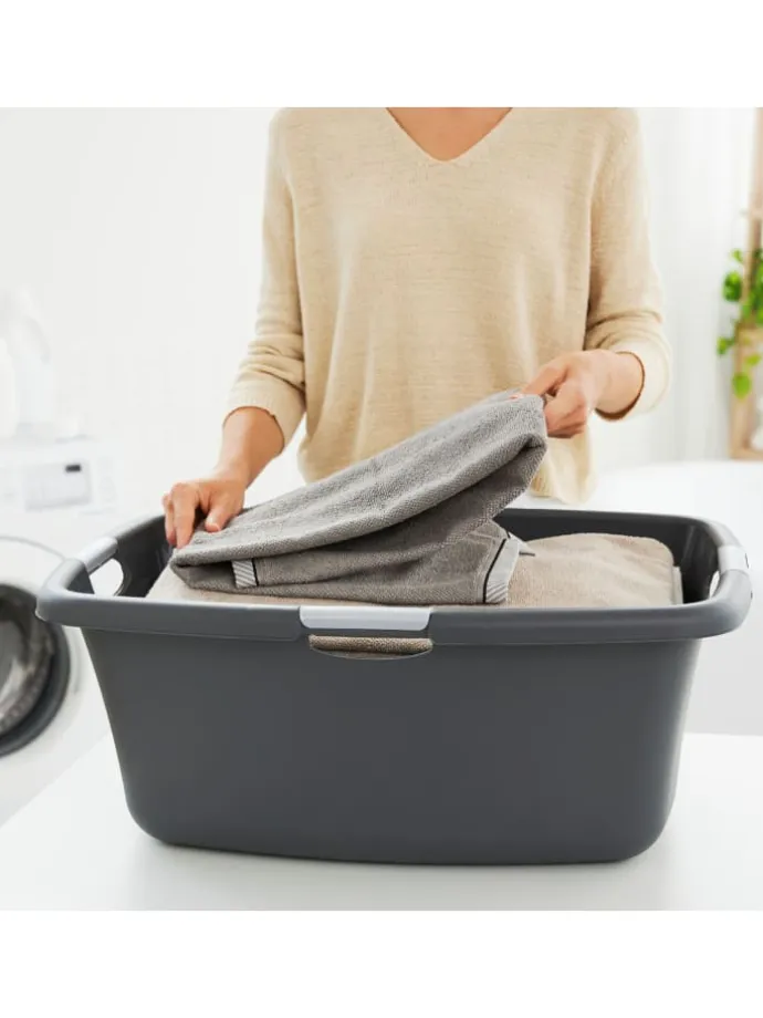 Die funktionale Rotho Wäschewanne FLOWERS erleichtert Ihnen nicht nur das Sammeln und Transportieren von Schmutz- und Bügelwäsche, sondern eignet sich auch hervorragend als vielseitiger Haushaltskorb für Einkäufe oder zum Einsortieren.