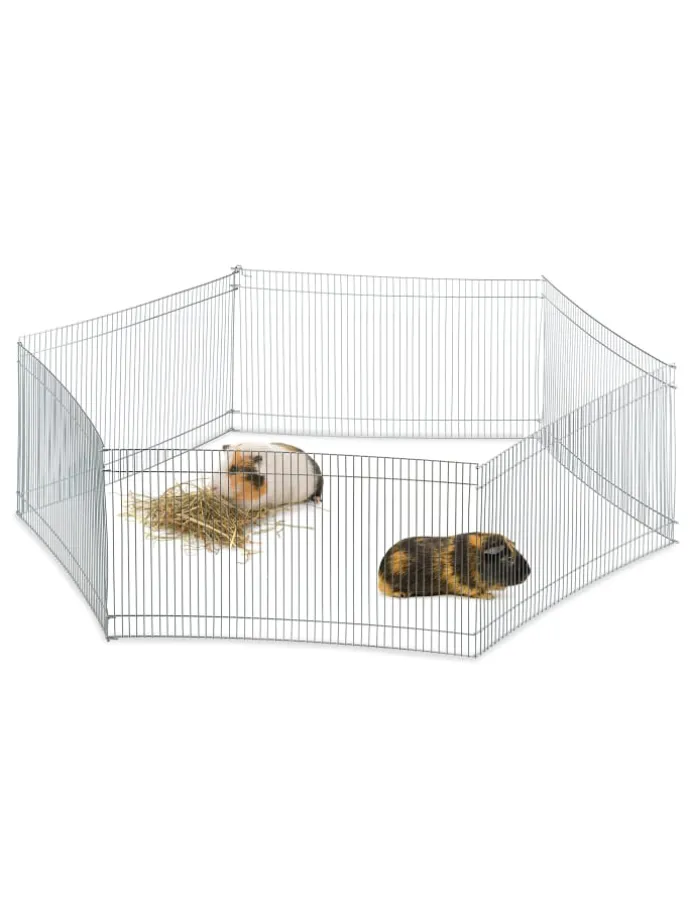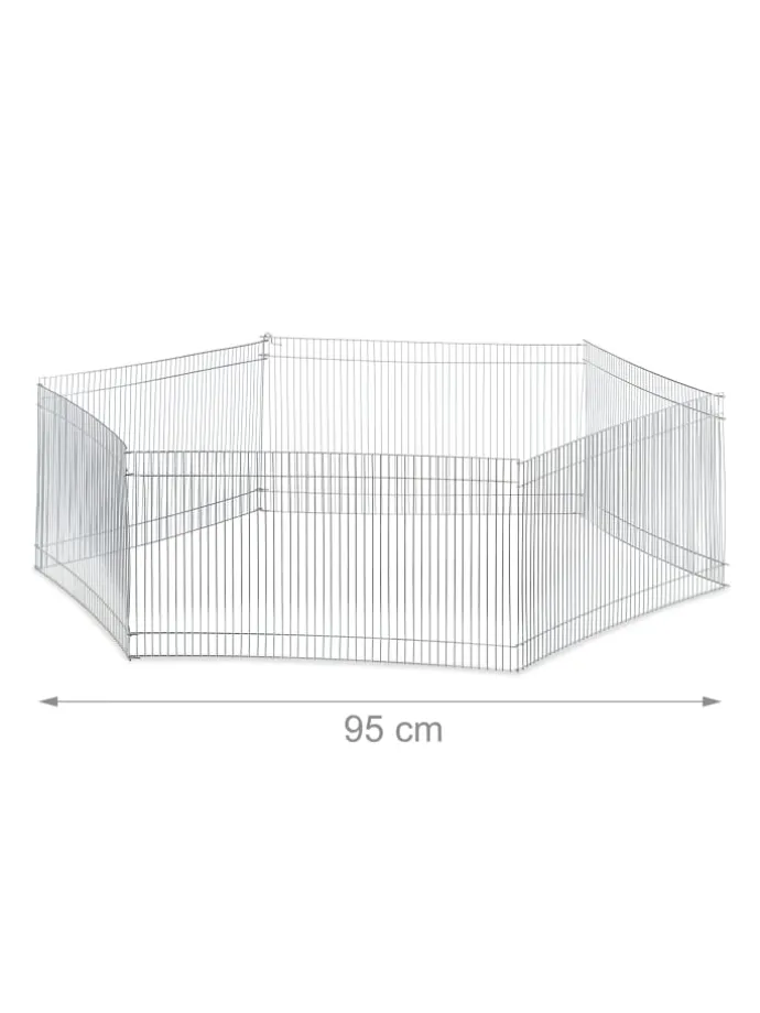 Sie suchen ein alternatives Gehege, in das Sie Ihre kleinen Nager hineinsetzen können, während Sie den Käfig sauber machen? Das achtteilige Freilaufgehege ist dafür schnell auseinander geklappt und mit einem Stab fixiert. Mit einem engmaschigen Gitterabstand von 1cm stellt es ein einfaches Indoor Gehege für Meerschweinchen, Hamster und Rennmäuse dar, welches durch die miteinander verbundenen Gitterelemente mehr Sicherheit bietet.