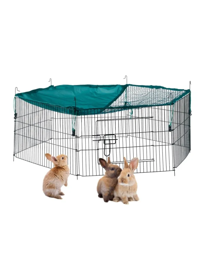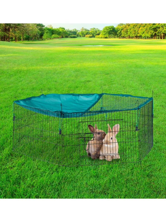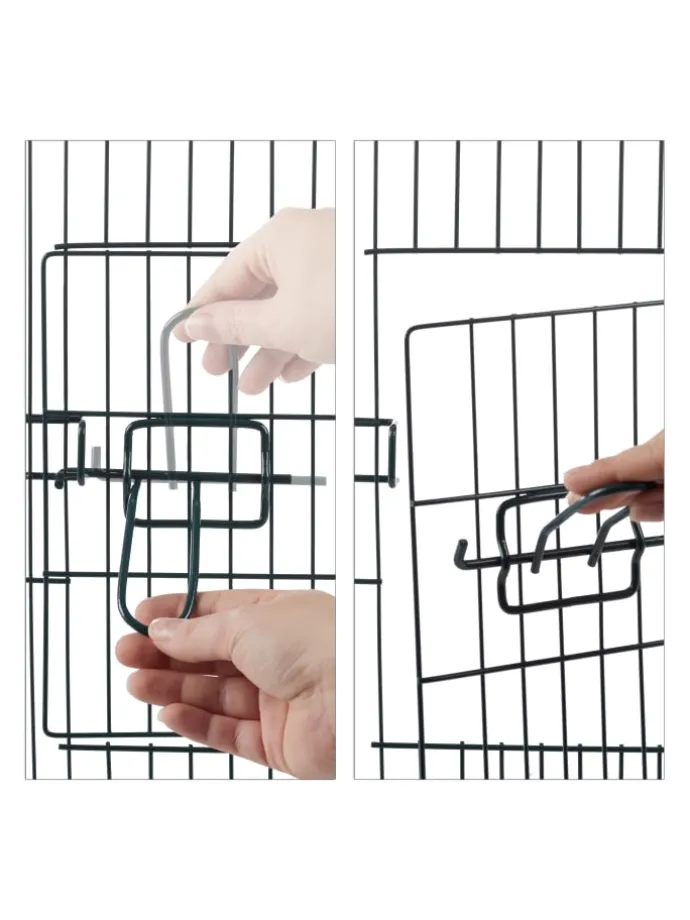 Das Freigehege für Hasen, Kaninchen und Meerschweinchen besteht aus 6 Gitterelementen, die mit Bodenspießen in der Erde fixiert werden. Aus stabilem Metall gefertigt, bewahrt es die kleinen Tiere sicher und ermöglicht ihnen, draußen frische Luft zu schnuppern. Geschützt vor Greifvögeln, Sonne und ersten Regentropfen, werden sie sich in diesem Gehege pudelwohl fühlen. Gestalten Sie ein schönes Außengehege für ihre kleinen Gefährten!
