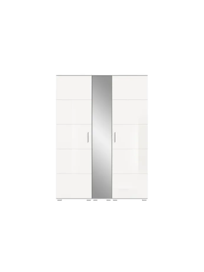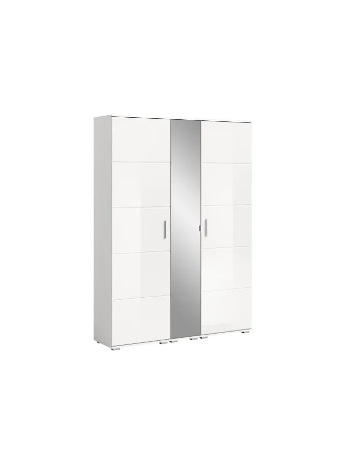 Garderobenkombination (B/H/T: 140x191x37 cm) in weiß und weiß Hochglanz