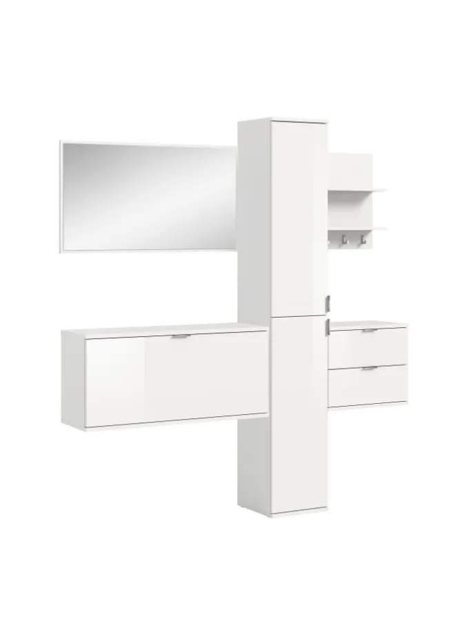 Garderobenkombination (B/H/T: 174x191x37 cm) in weiß hochglanz