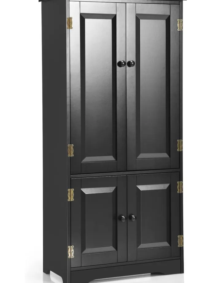 Aus MDF-Platten gefertigt ist er robust und zuverlässig sowie langfristig verwendbar. Die 4 großen Fächer bieten Platz für viele Gegenstände. Zudem lassen sich die Regale 5-fach verstellen, wodurch auch Platz für große Gegenstände ist. Der Kippschutz sorgt für zusätzliche Stabilität und durch die erhöhten Füße dringt keine Feuchtigkeit ins Innere. Dank des schlichten und eleganten Designs eignet sich der Schrank für Wohnzimmer, Schlafzimmer, Badezimmer, etc.