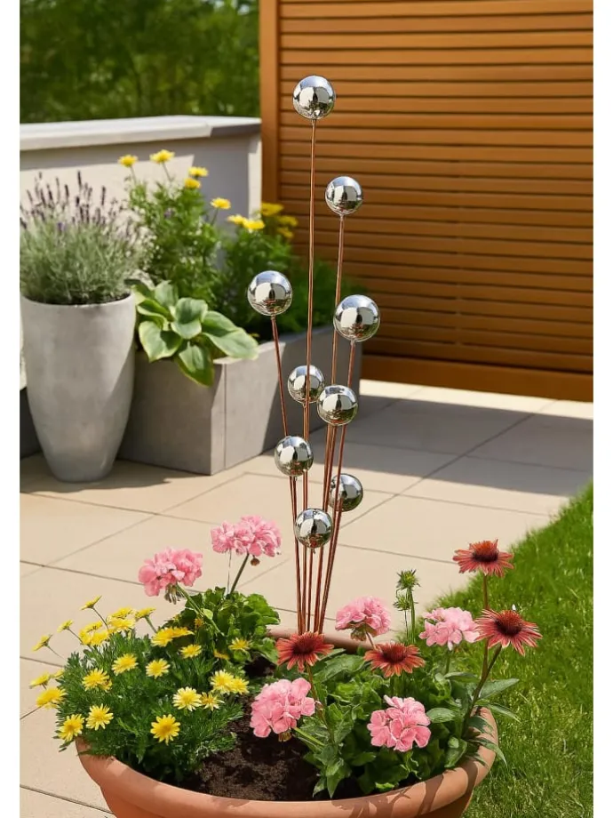 Verleihen Sie Ihrem Garten einen Hauch von Eleganz und rustikalem Charme mit dem Kobolo Gartenstecker BOULES. Dieser einzigartige Dekostecker kombiniert die warme, antike Ausstrahlung von Rostoptik mit dem modernen Glanz von Edelstahlkugeln und schafft so ein faszinierendes Highlight für Ihren Außenbereich. Die natürliche Rostpatina verleiht dem Stecker eine authentische, zeitlose Anmutung, die sich perfekt in naturnahe Gartenkonzepte einfügt. Die polierten Edelstahlkugeln reflektieren das Licht auf wunderbare Weise und sorgen für einen strahlenden Effekt, der das Auge anzieht. Der Gartenstecker lässt sich mühelos in den Boden stecken und bleibt dank seiner stabilen Bauweise auch bei Wind und Wetter standfest.