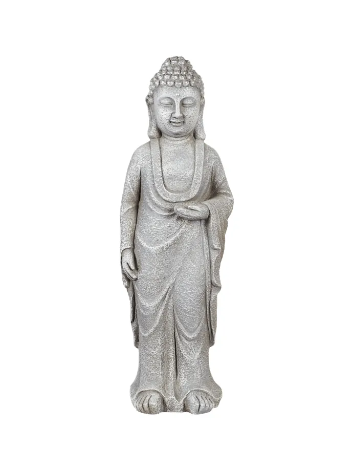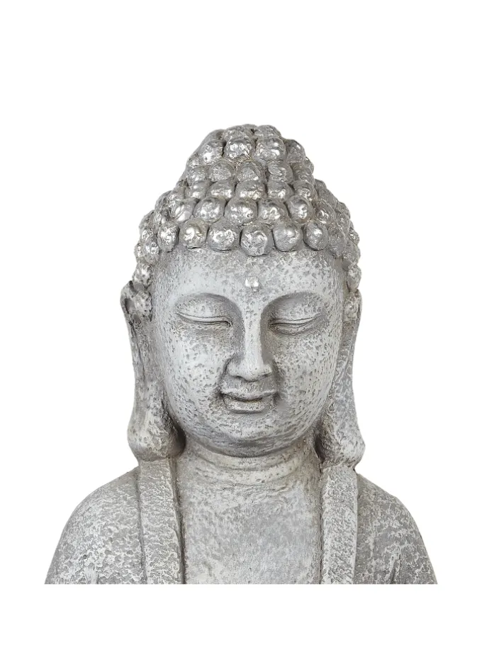 Dekorative Buddha-Figur für den Garten. Diese faszinierende handgefertigte Buddha-Figur strahlt Ruhe und Gelassenheit aus und ist die perfekte Ergänzung für jedes Zuhause. Die mit Sorgfalt gefertigten Details zeugen von höchster Handwerkskunst, während das vielseitige Design sowohl für den Innen- als auch für den Außenbereich geeignet ist. Ideal, um in Ihrem Wohnzimmer, Garten oder auf der Terrasse eine entspannende Atmosphäre zu schaffen, lädt dieses Dekorationsstück dazu ein, Ruhe und Achtsamkeit in Ihre Umgebung zu bringen. Ob als Blickfang oder dezenter Akzent, dieser Buddha sorgt für zeitlose Eleganz und Charme.
