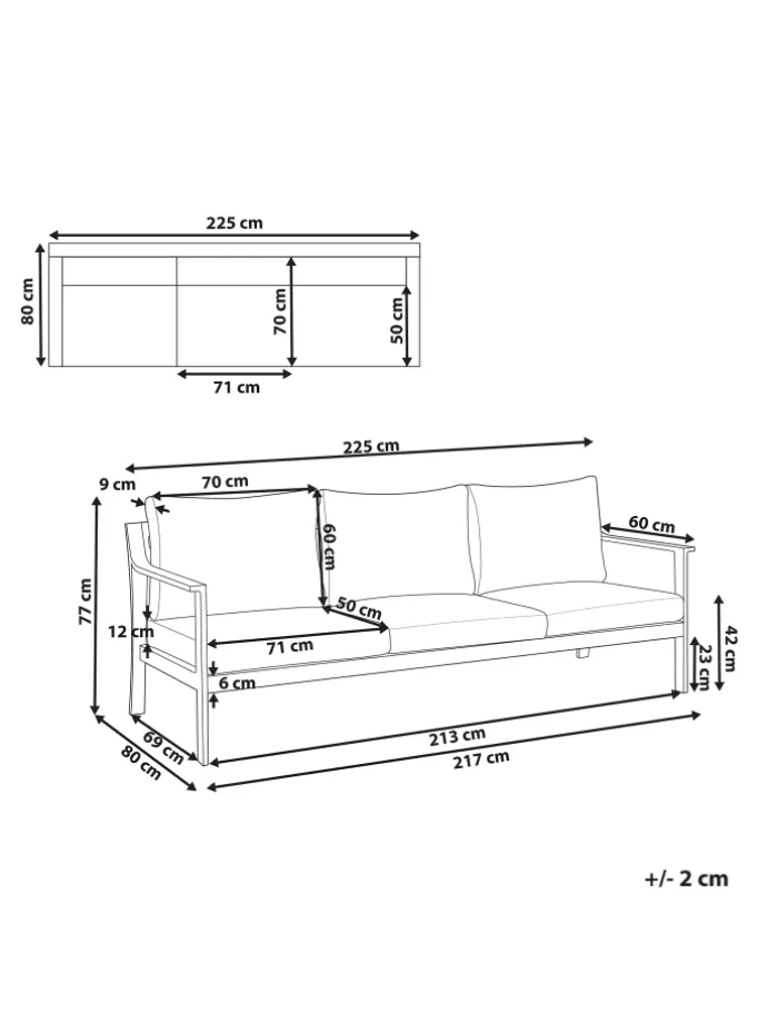 Sitzfläche: 220×70 cm