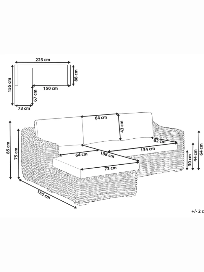 Sitzfläche: 207×138 cm