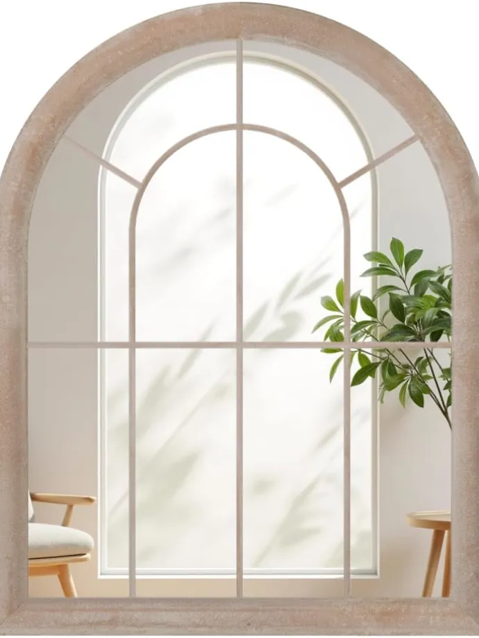 Verleihen Sie Ihrem Wohnraum mit diesem Bauernhaus Fensterrahmen Spiegel ein stilvolles Highlight. Dieser große, gewölbte Wandspiegel verfügt über einen robusten Metallrahmen in rustikalem Grauton, der sowohl Haltbarkeit als auch Stil garantiert. Der Spiegel reflektiert klar und verbessert das natürliche Licht, wodurch eine offene und freundliche Atmosphäre entsteht. Das explosionsgeschützte Glas sorgt für zusätzliche Sicherheit.