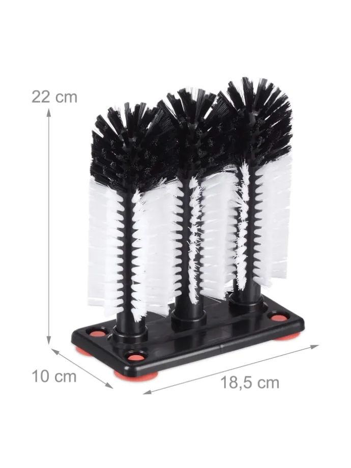 Das Gläserspülgerät ist perfekt geeignet, um viele schmutzige Gläser schnell und effektiv abzuspülen. Dazu wird der Glasspüler einfach in das Spülbecken gestellt, wobei die 4 Saugnäpfe für einen rutschfesten Stand sorgen. Dank der Fertigung mit 3 Bürsten werden Longdrink- und Biergläser mit wenigen Drehungen gleichzeitig von innen und außen gereinigt. Die Spülbürste eignet sich hervorragend für den professionellen Einsatz in Restaurants, Kneipen und Bars.