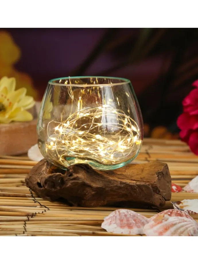 Glasschale auf Wurzelholz – Dekoschale – D: 14cm – natur Diese organisch geformte Schale aus mundgeplasenem Glas sitzt auf einem Naturholz und wurde in weichem Zustand aufgepresst. Das sieht richtig interessant und dekorativ aus. Durch die Formanpassung des Glases an das Holz sitzt die Schale fest auf und kann wahlweise bepflanzt oder mit Dekomaterialien gefüllt werden.