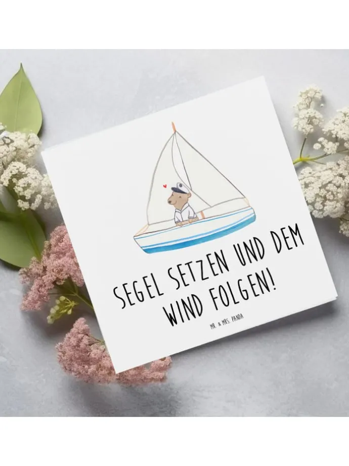 Diese liebevoll gestaltete Gutscheinkarte „Segelbootstour“ von Mr. & Mrs. Panda ist das ideale Geschenk für Menschen, die das Meer, Freiheit und besondere Erlebnisse lieben. Der inspirierende Spruch „Segel setzen und dem Wind folgen!“ lädt zu gemeinMenschen Abenteuern ein und weckt Vorfreude auf Momente, die lange in Erinnerung bleiben. Die Karte ist innen bewusst freigelassen, damit Du persönliche Worte, konkrete Termine oder eine individuelle Botschaft eintragen kannst. So wird aus einem einfachen Gutschein ein emotionales Erinnerungsstück, das Gefühle ausdrückt und persönliche Wünsche transportiert.