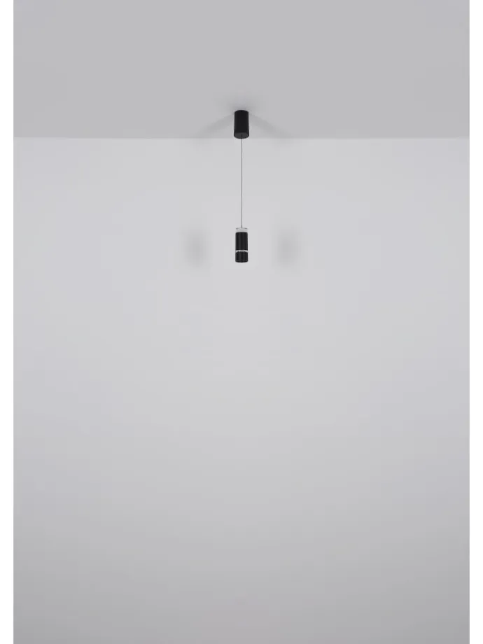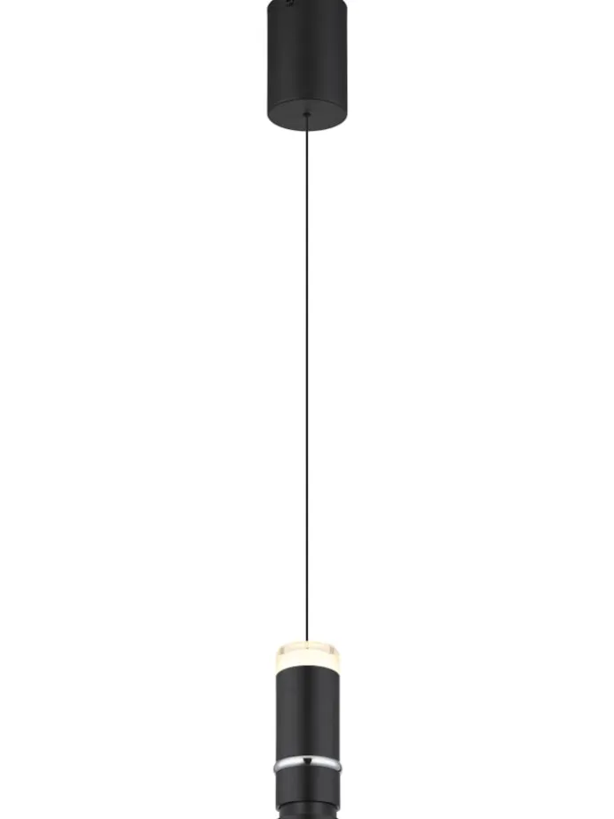 Hängeleuchte Metall schwarz matt, Metall schwarz matt, Chromring, Acryl satiniert, Kabel PVC Schwarz, Höhenverstellbar, Lichtkegel verstellbar, ø: 75mm, H: 1800mm, höhenverstellbar von 50-180cm, inkl. LED 6W 230V, 700lm Source, 400lm Output, 3000K
