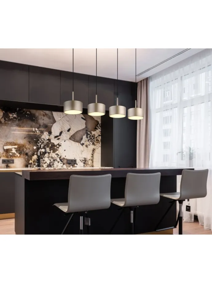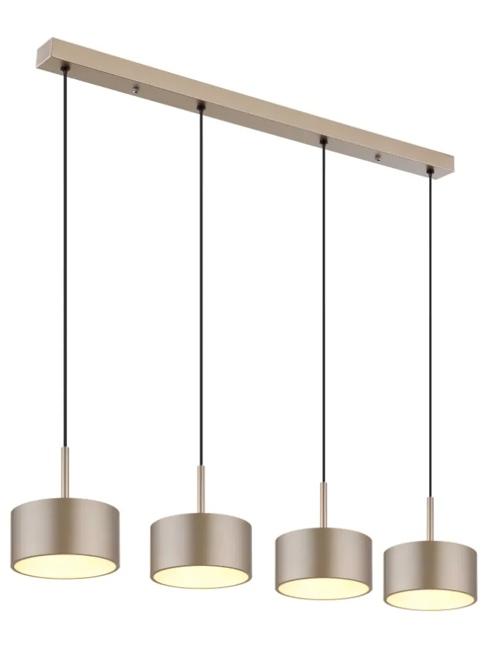 Hängeleuchte Metall schwarz matt, Kunststoff anthrazit, Kunststoff champagnerfarben matt, Kunststoff opal, Kabel PVC Transparent, Höhe kürzbar, LxBxH: 860x150x1500mm, inkl. LED 40W 230V, 5100lm Source, 1900lm Output, 3000K