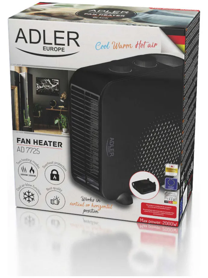 – 2 Stufen der Heizleistung: 1000W, 2000W