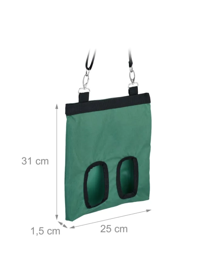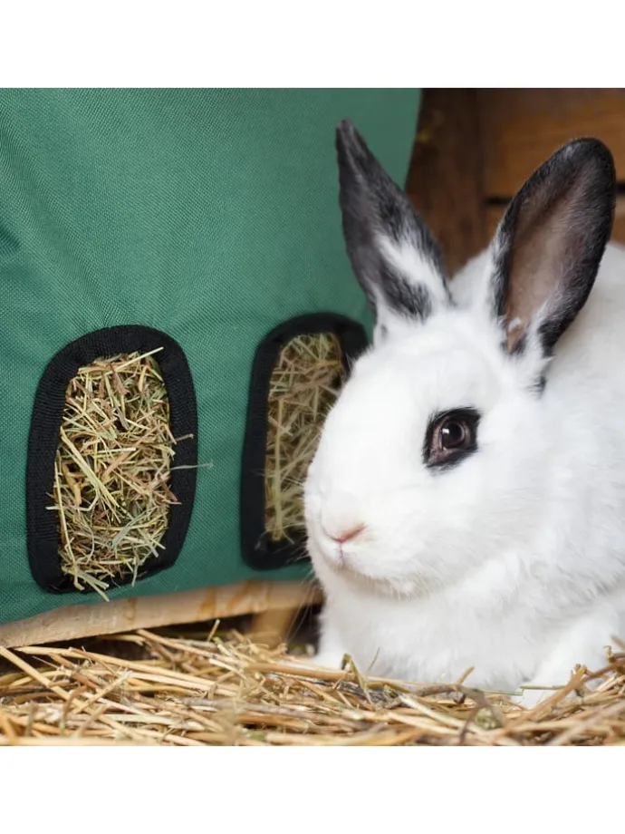Die Heutasche bietet eine praktische Lösung für die Fütterung von Kaninchen, Meerschweinchen, Hamstern und anderen Kleintieren mit Heu. Die kleine Hasenheuraufe verfügt über zwei ovale Öffnungen, die einen guten Zugang zum Futter ermöglichen. Hänge die Heu-Aufbewahrungstasche mit dem längenverstellbaren und abnehmbaren Band mühelos auf, um Deinen Tieren ein individuelles und naturnahes Fresserlebnis zu bieten. Mit dem Klettverschluss am oberen Rand lässt sich der Heusack sicher verschließen.