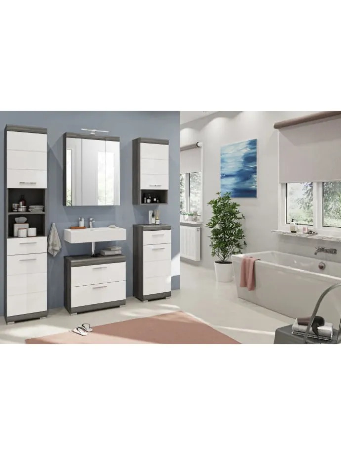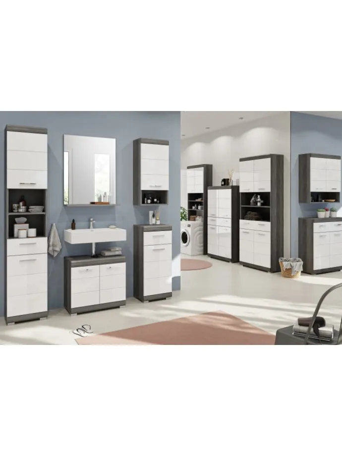 In unserem trendigen Sortiment präsentieren wir einen Badezimmer Hochschrank in angesagter Rauchsilber Nachbildung und weißem Hochglanz tiefgezogenem Finish, der deinem Badezimmer einen modernen Touch verleiht. Mit seinen schlanken Maßen von 37x191x31 cm bietet er nicht nur praktischen Stauraum, sondern auch ein stilvolles Design. Entdecke die perfekte Kombination aus Funktionalität und trendigem Chic mit diesem angesagten Hochschrank.