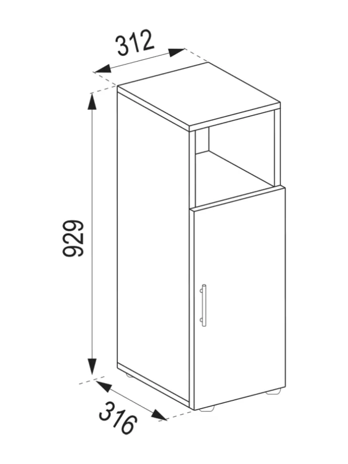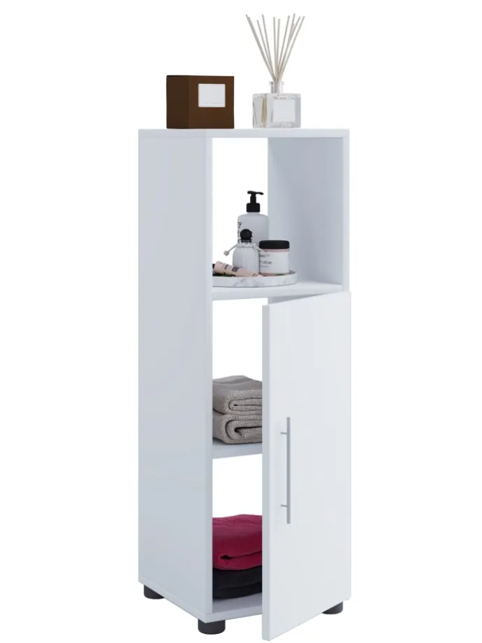 – Badmöbel mit einer Drehtür und ein offenes Fach für optimalen Stauraum