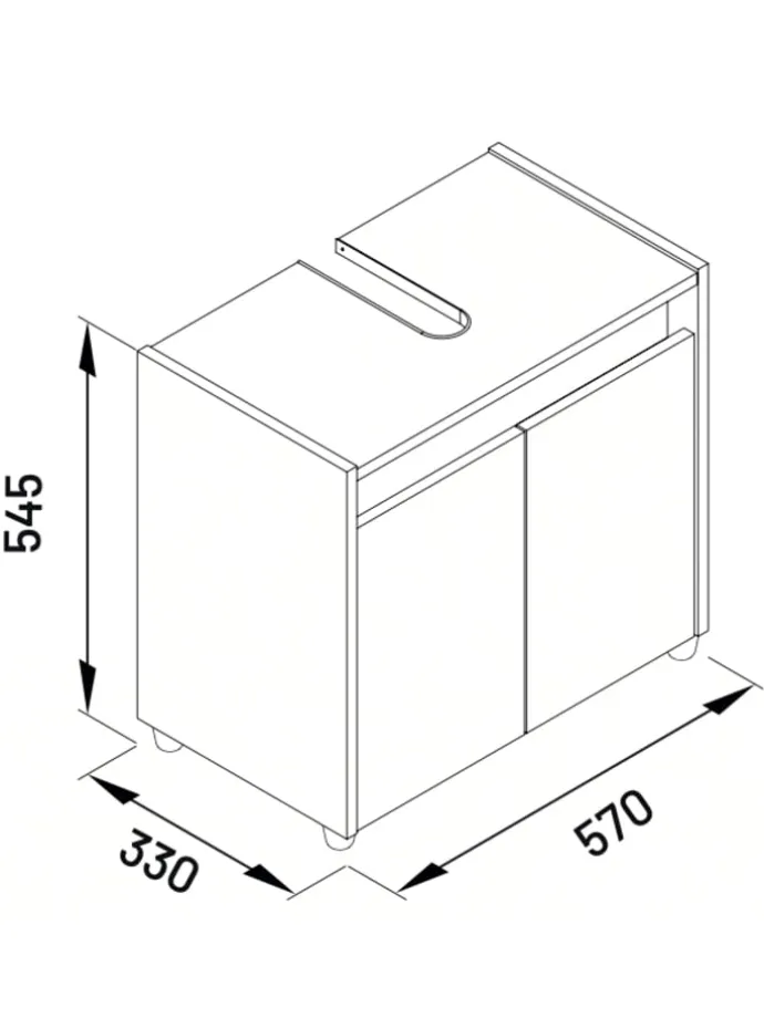– Kompakte Größe: Mit den Maßen 55 x 57 x 33 cm ist der Schrank platzsparend und ideal für kleinere Badezimmer oder als zusätzlicher Stauraum unter dem Waschbecken.