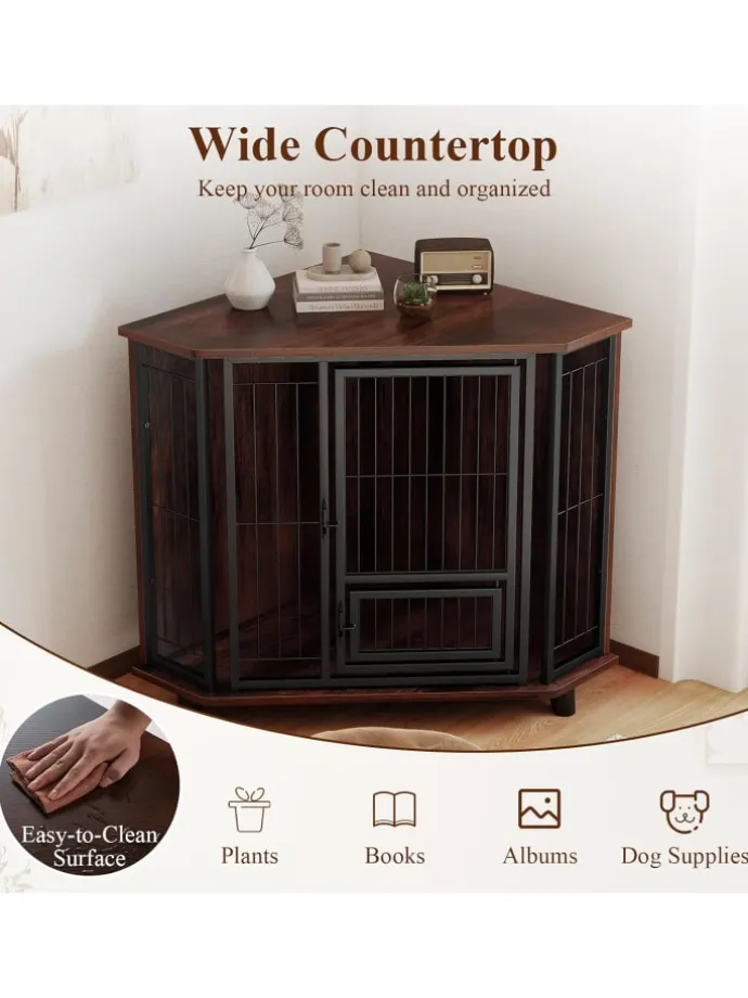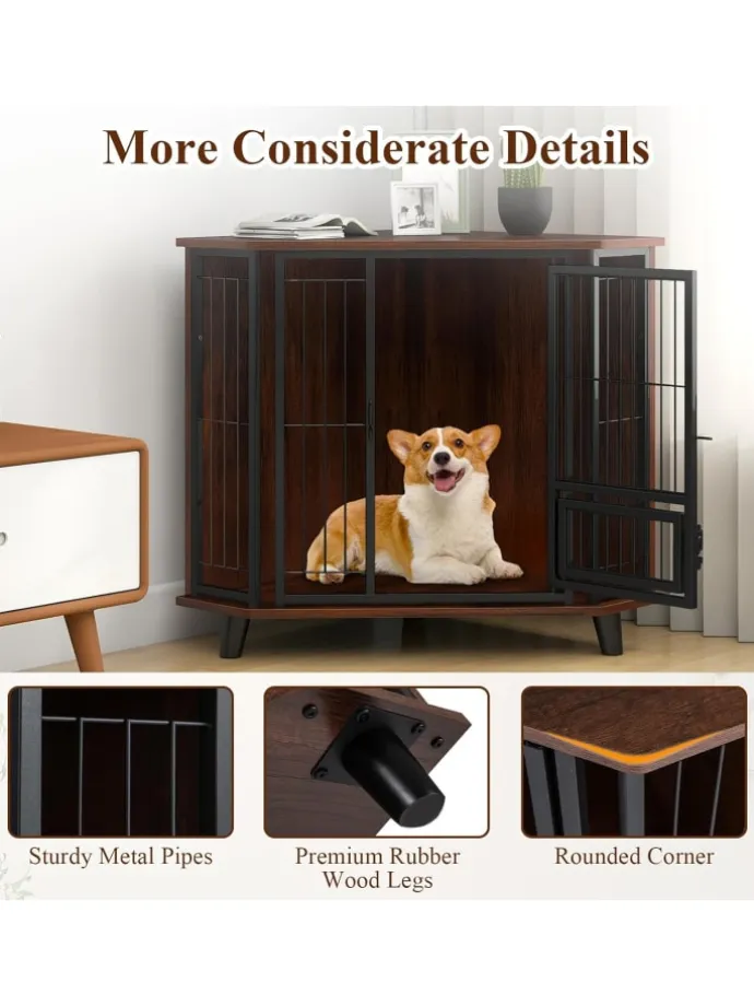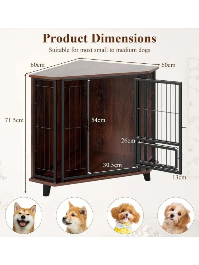 Suchen Sie eine multifunktionale Hundebox, die sich nahtlos in Ihre Wohnraumdekoration einfügt? Diese vielseitige Hundebox ist die perfekte Lösung. Geeignet für kleine bis große Hunde (bis zu 30 kg), dient sie gleichzeitig als stilvoller TV-Ständer und Beistelltisch. Die große Arbeitsplatte bietet Platz für Pflanzen, Bücher, Alben und Hundezubehör und hält Ihr Zimmer sauber und ordentlich. Sie verfügt über eine praktische Futtertür und 2 Türschlösser für die Sicherheit Ihres Haustiers. Mit den Maßen 60 x 60 x 71,5 cm (L x B x H) nutzt diese Eck-Hundebox den Platz effizient und ist ideal für kleine Wohnungen oder Häuser.