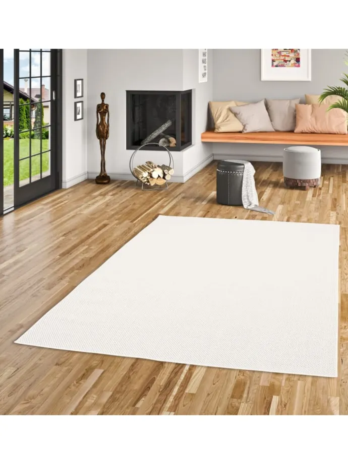 „Allrounder“ können Sie hier wörtlich nehmen! Dieser Teppich fügt sich nicht nur stilvoll in jeden Wohnbereich ein, sondern ist außerdem In- und Outdoor einsetzbar und setzt stilvolle Akzente in Natur Optik. Seine rustikale Sisaloptik passt „drinnen wie draußen“ und die erstklassige Kunstfaser hebt die Empfindlichkeit des Sisals auf und macht den Teppich robust und pflegeleicht. Das Material ist besonders strapazierfähig und hält sowohl Feuchtigkeit oder UV-Strahlung problemlos stand. Verschiedene Farben und Designs machen ihn an jedem Ort zu einem Hingucker! Das hochwertige Garn aus 100% Polypropylen ist schadstoffgeprüft. Die Herstellung der Valencia Teppiche findet in einem nach BSCI (Business Social Compliance Initiative) zertifiziertem Betrieb statt.