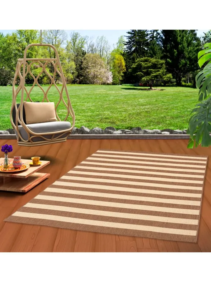 „Allrounder“ können Sie hier wörtlich nehmen! Dieser Teppich fügt sich nicht nur stilvoll in jeden Wohnbereich ein, sondern ist außerdem In- und Outdoor einsetzbar und setzt stilvolle Akzente in Natur Optik. Seine rustikale Sisaloptik passt „drinnen wie draußen“ und die erstklassige Kunstfaser hebt die Empfindlichkeit des Sisals auf und macht den Teppich robust und pflegeleicht. Das Material ist besonders strapazierfähig und hält sowohl Feuchtigkeit oder UV-Strahlung problemlos stand. Verschiedene Farben und Designs machen ihn an jedem Ort zu einem Hingucker! Das hochwertige Garn aus 100% Polypropylen ist schadstoffgeprüft. Die Herstellung der Valencia Teppiche findet in einem nach BSCI (Business Social Compliance Initiative) zertifiziertem Betrieb statt.
