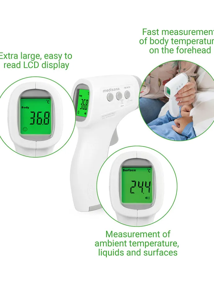 Das berührungslose Infrarot-Körperthermometer TM A79 von medisana ist für die intermittierende Messung und Überwachung der menschlichen Körpertemperatur durch Verbraucher im häuslichen Bereich und in der Primärversorgung als Screening-Instrument konzipiert.