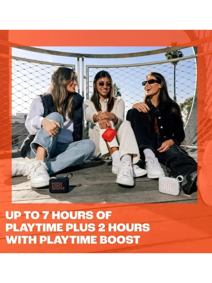 Der JBL GO 4 besitzt ein nach IP67 geschütztes Gehäuse und kann so überall mithin genommen werden, ganz egal wie gut oder schlecht das Wetter ist. Audio-Inhalte werden via Bluetooth abgespielt, dabei erreicht der GO 4 je nach Lautstärke bis zu 7 Stunden ununterbrochene Musikwiedergabe. Dank der praktischen, im Gehäuse integrierten Trageschlaufe kann man den kompakten Lautsprecher einfach transportieren. Eine volle Aufladung dauert ca. 3 Stunden und erfolgt über USB-C.