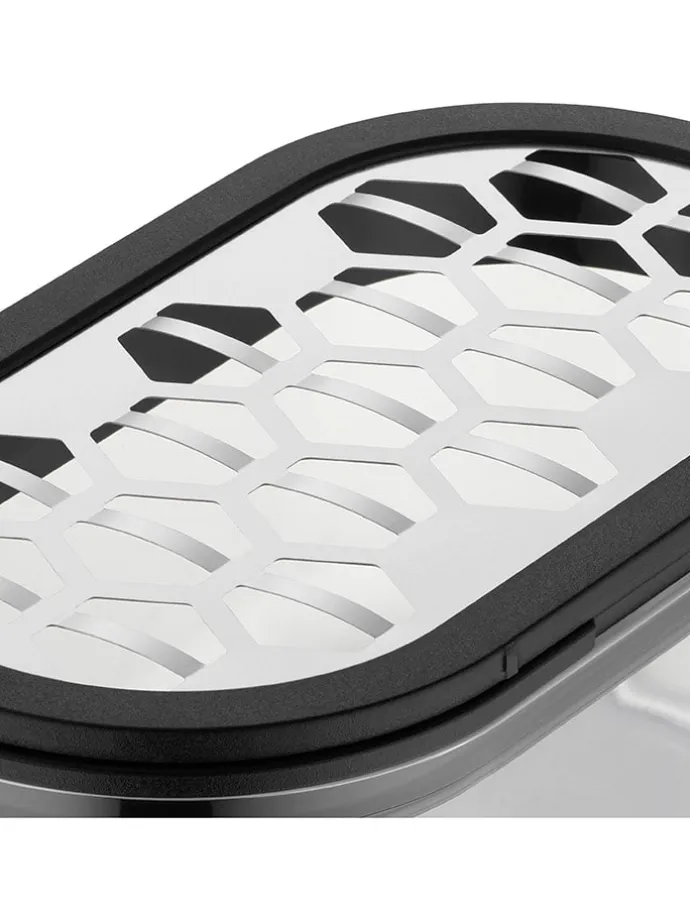 – inklusive Auffangbehälter und Deckel für die Aufbewahrung im Kühlschrank